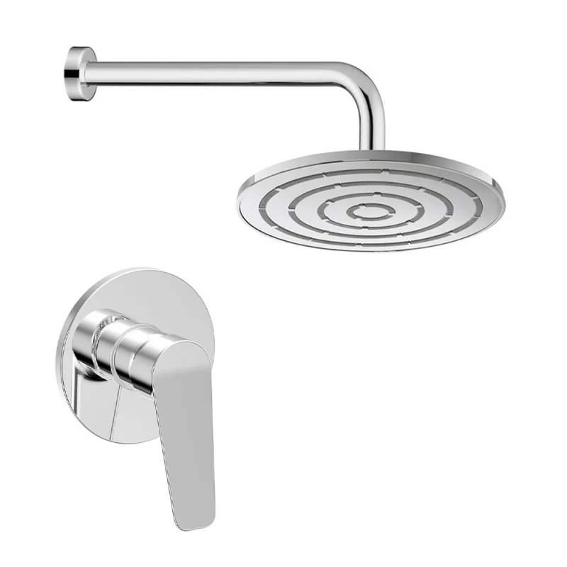 Minimal, brillante e funzionale: il kit doccia della Linea Aurora porta nel tuo bagno uno stile moderno e pulito. Il set è composto da un miscelatore monocomando ad incasso in ottone, un braccio da 35 cm in acciaio e un ampio soffione da 20 cm in ABS, tutti con finitura cromata lucida per un effetto specchiato elegante. Le forme tondeggianti e il design essenziale lo rendono ideale per ambienti contemporanei, regalando un'esperienza doccia comoda e raffinata ogni giorno.
