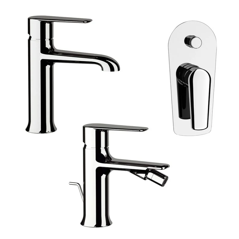 Set miscelatori in ottone cromato doccia con deviatore lavabo e bidet linea Armonia