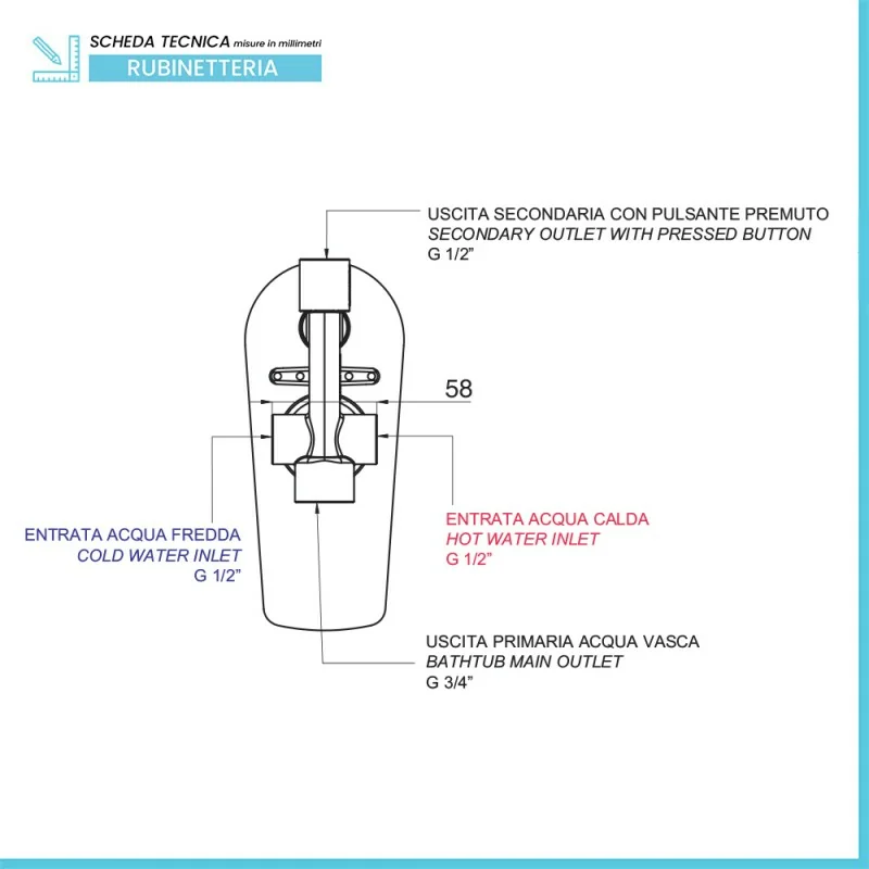 • Dimensioni miscelatore lavabo: L 8,6 x P 50 Ø x H 18,2 cm;