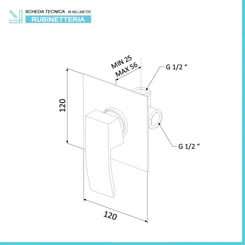 • Dimensioni miscelatore doccia a incasso: L 12 x P 5,6 x H 12 cm;