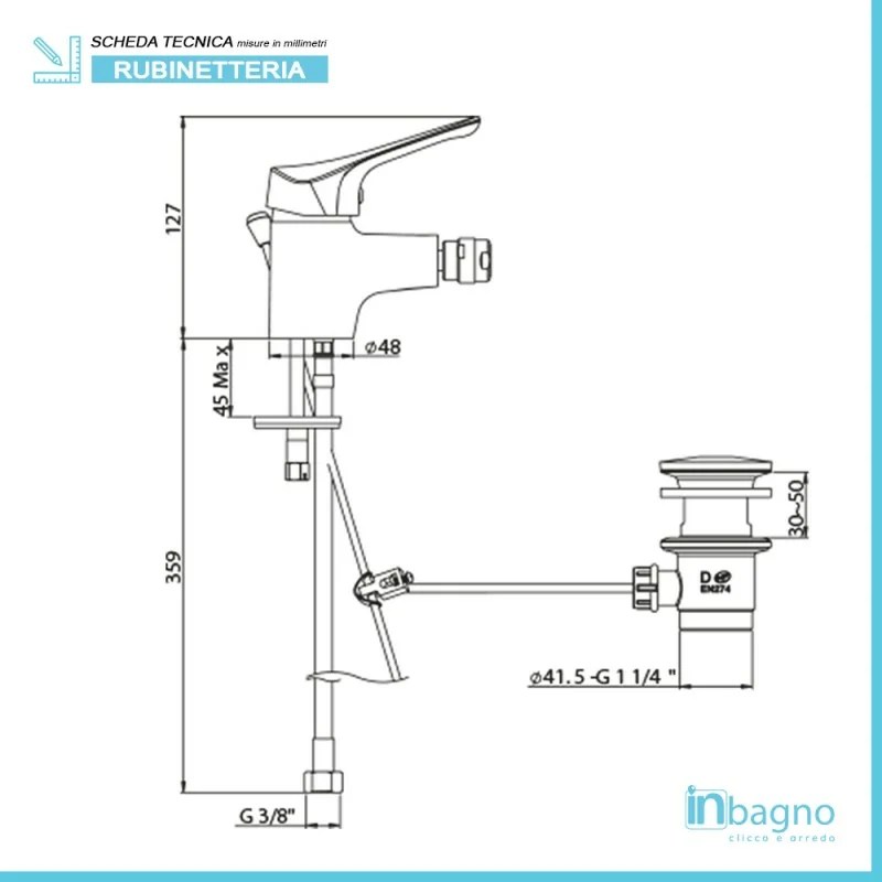 • Dimensione miscelatore bidet:H 12.7 x p 10 cm;