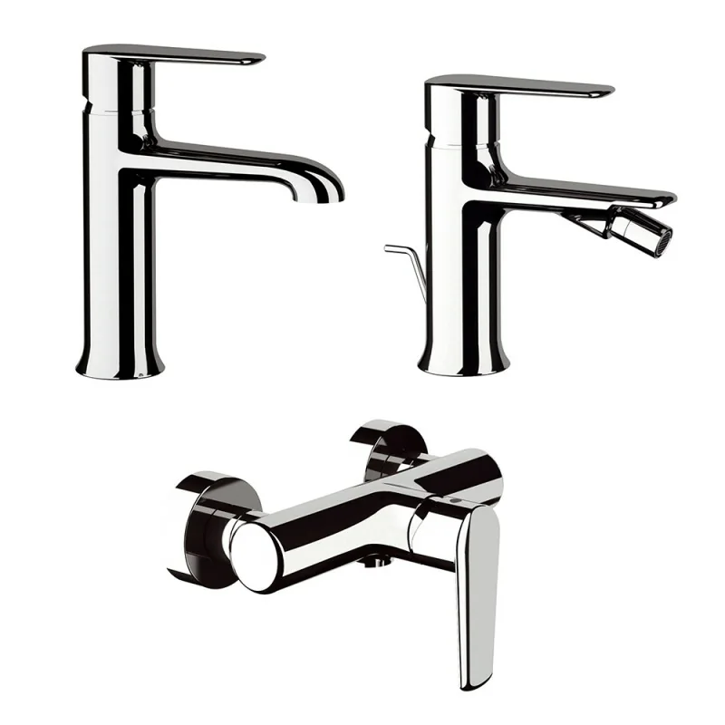 Set miscelatori in ottone cromato monocomando vasca esterno, lavabo e bidet linea Armonia