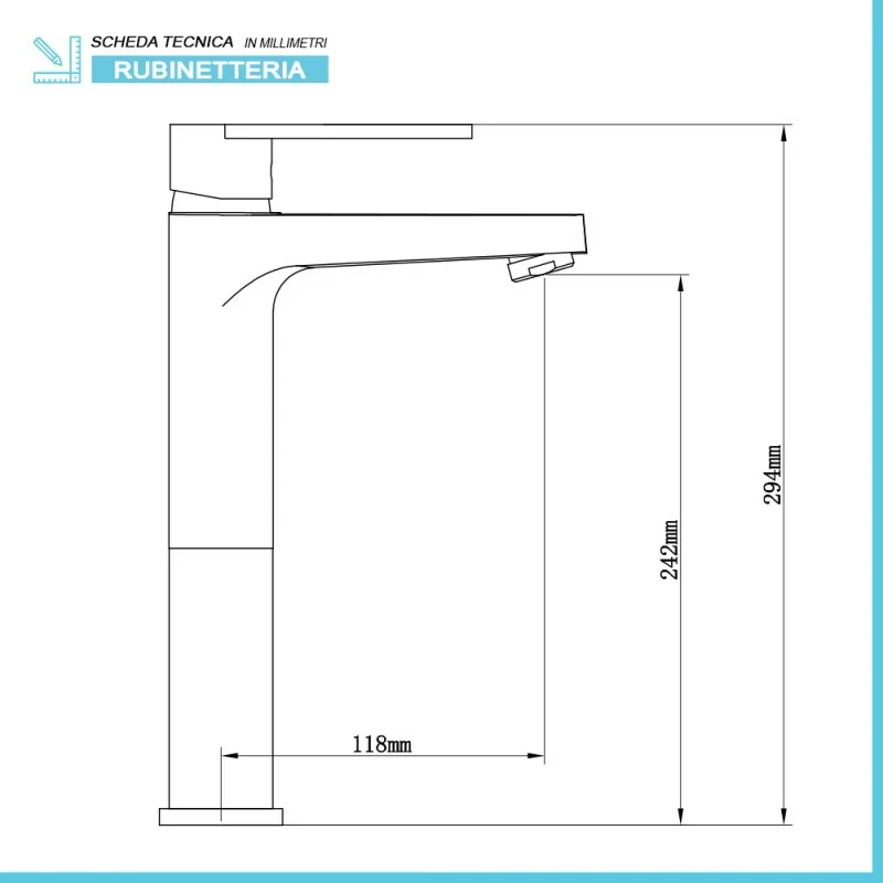 • Dimensioni rubinetto lavabo alto:H 29,4 x p 11,8 cm;