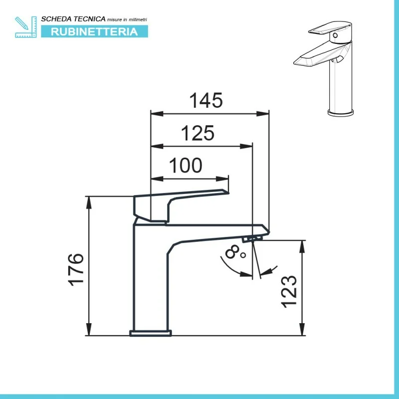• Dimensione miscelatore lavabo: H 17,6 x p 14,5 cm;
