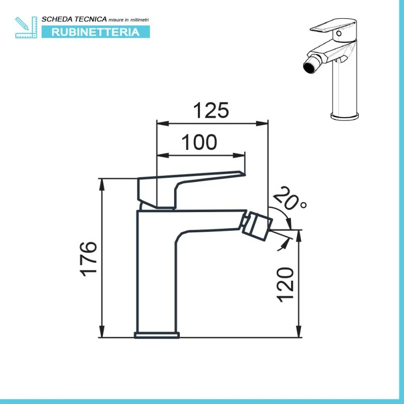 • Dimensione miscelatore bidet: H 17,6 x p 12,5 cm;