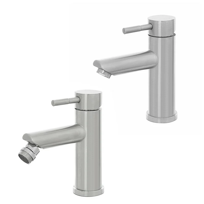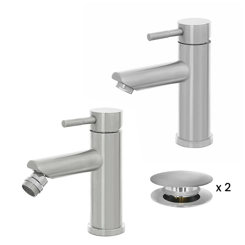 Set miscelatori lavabo e bidet acciaio spazzolato e piletta click-clack | York