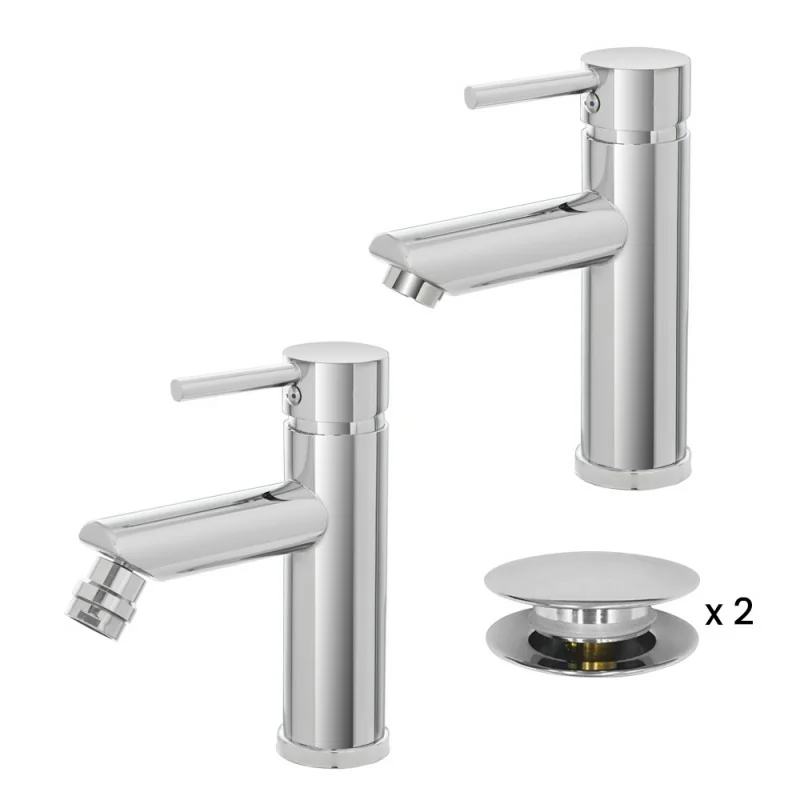 Set miscelatori lavabo e bidet cromato lucido con piletta click-clack | York