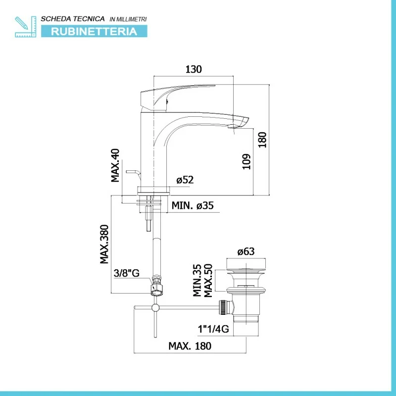 • INCLUDE piletta di scarico e flessibili di collegamento;