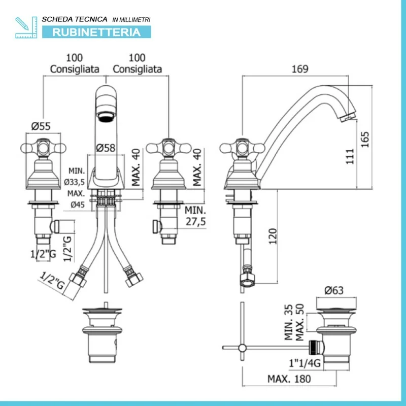 I miscelatori lavabo e bidet hanno la piletta di scarico inclusa,mentre il miscelatore vasca include un kit doccia cromato e bianco con laccio e doccino. L’installazione è molto semplice,facilitata dal kit di collegamento e fissaggio già presente all’interno delle confezione.