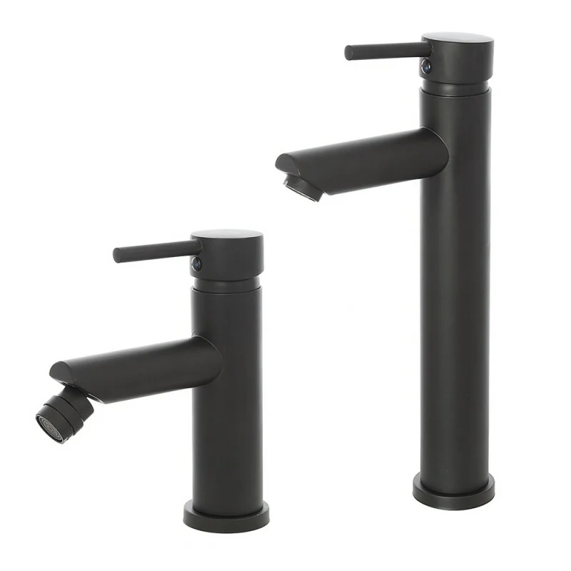 Set miscelatori lavabo alto e bidet – in acciaio inossidabile con piletta di scarico nero opaca