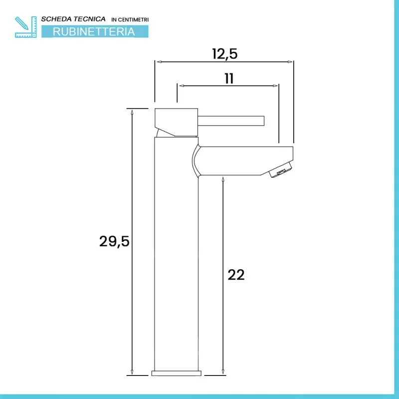 • Dimensioni lavabo:H 29,5 x p 12,5 cm;
