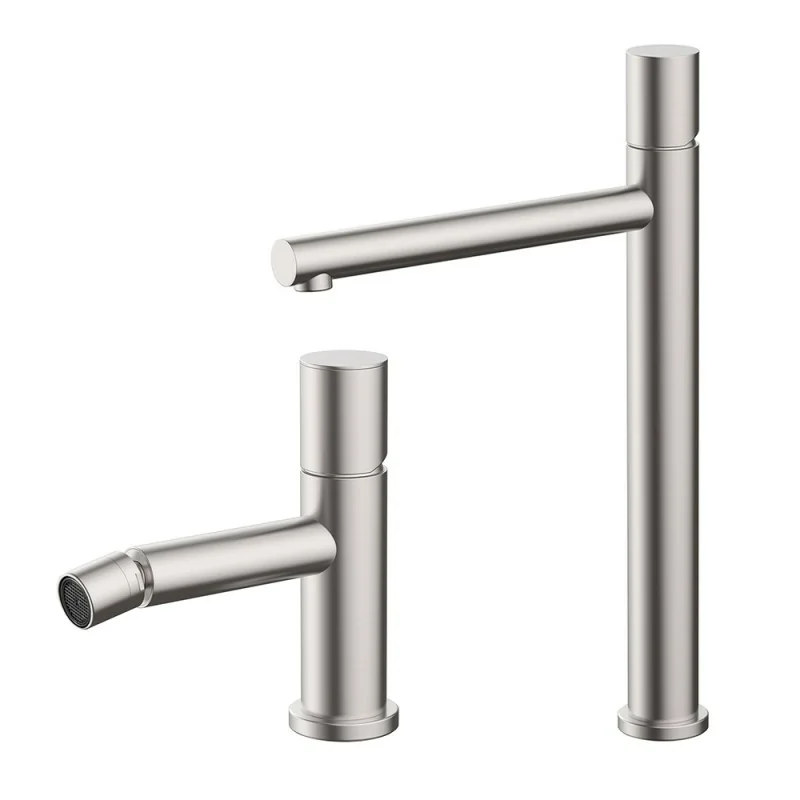Il set include il miscelatore lavabo alto e bidet,entrambi con girevole e comoda manopola,una naturale prosecuzione del corpo miscelatore che conferisce all’arredo bagno un particolare senso di compattezza,garantendo un controllo preciso del flusso d’acqua.