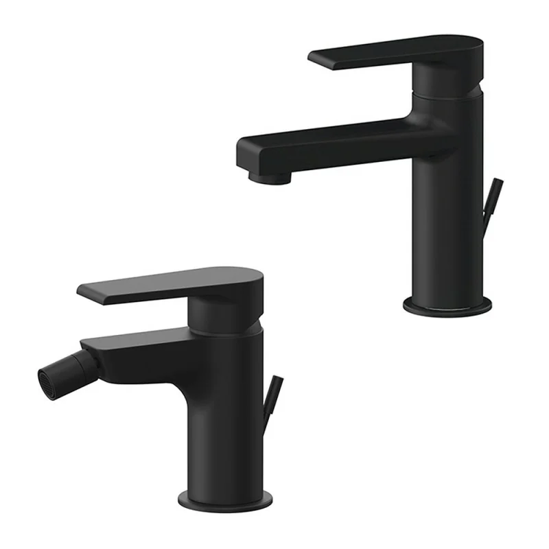 Set miscelatori lavabo e bidet nero opaco Mariani Artic scarico incluso