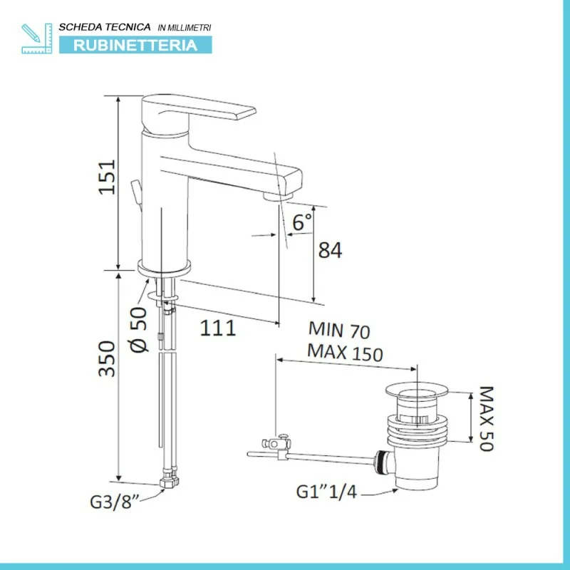 • Dimensioni lavabo:H 15,1 x p 11,1 cm;
