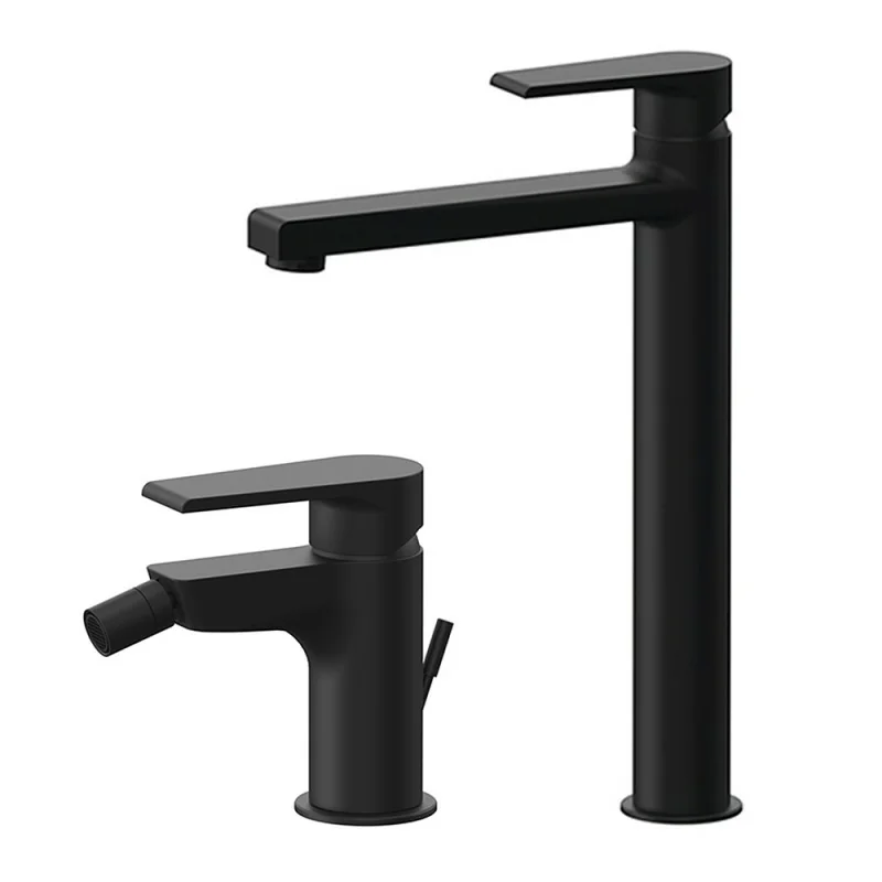 Set miscelatori lavabo alto e bidet nero opaco Mariani serie Artic