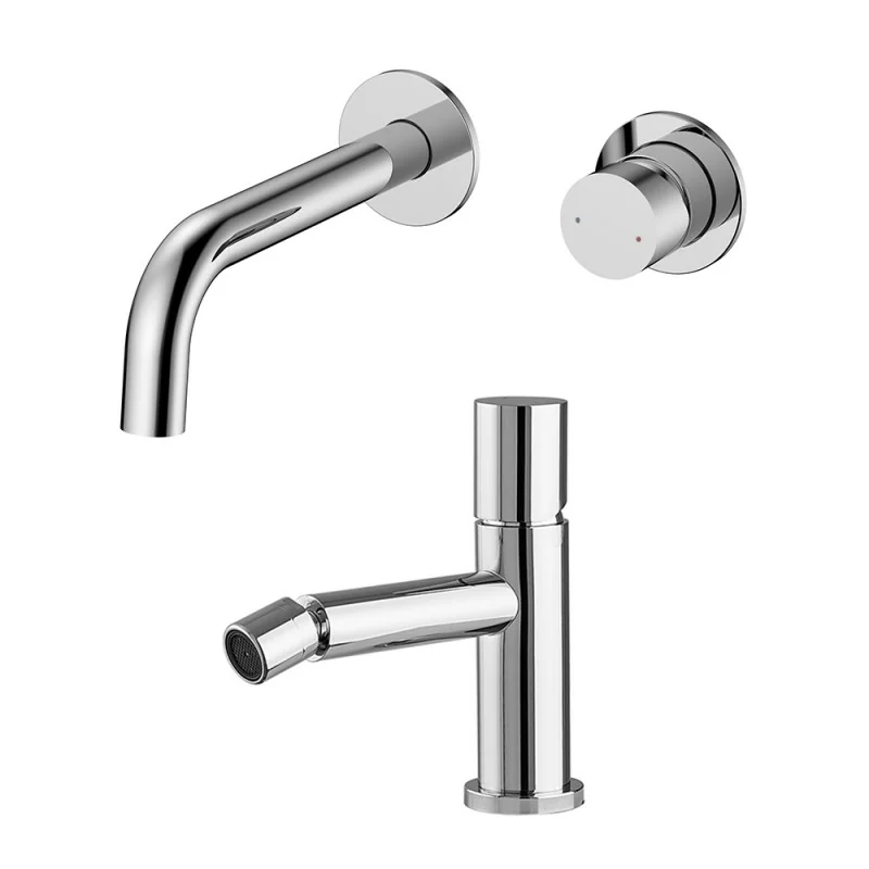 Set miscelatori lavabo a muro e bidet cromo senza leva Gemini
