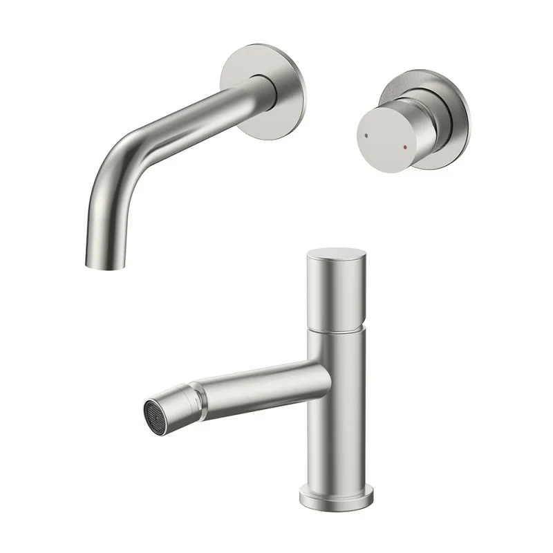 Set miscelatori lavabo a muro e bidet satinato senza leva Gemini