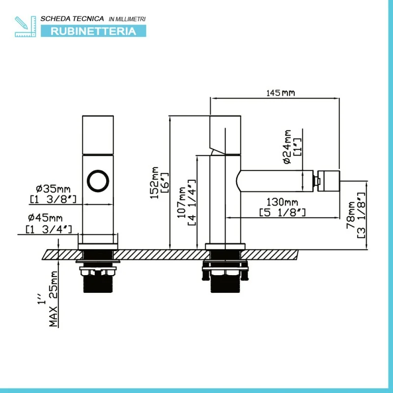 Set miscelatori lavabo a muro e bidet caratteristiche tecniche: