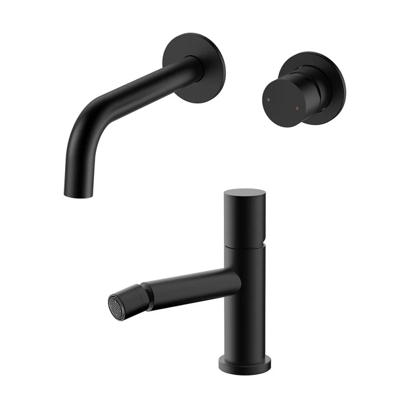 Set miscelatori lavabo a muro e bidet nero opaco senza leva Gemini