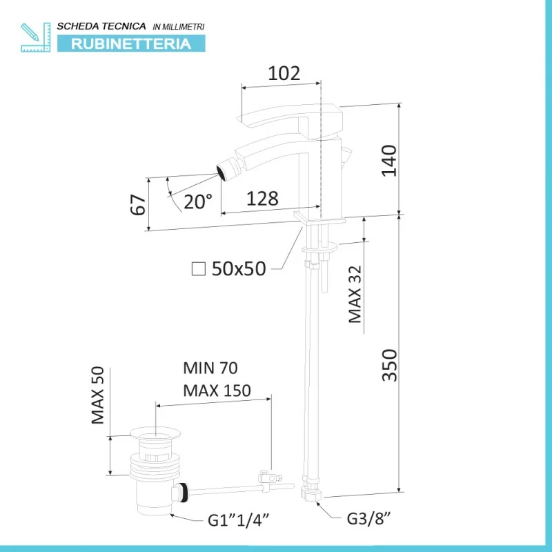 • Dimensioni miscelatore bidet: H 14 x P 12,8 cm;