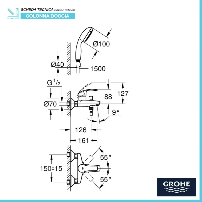 miscelatore vasca grohe eurosmart cromo completo di doccetta supporto e laccio