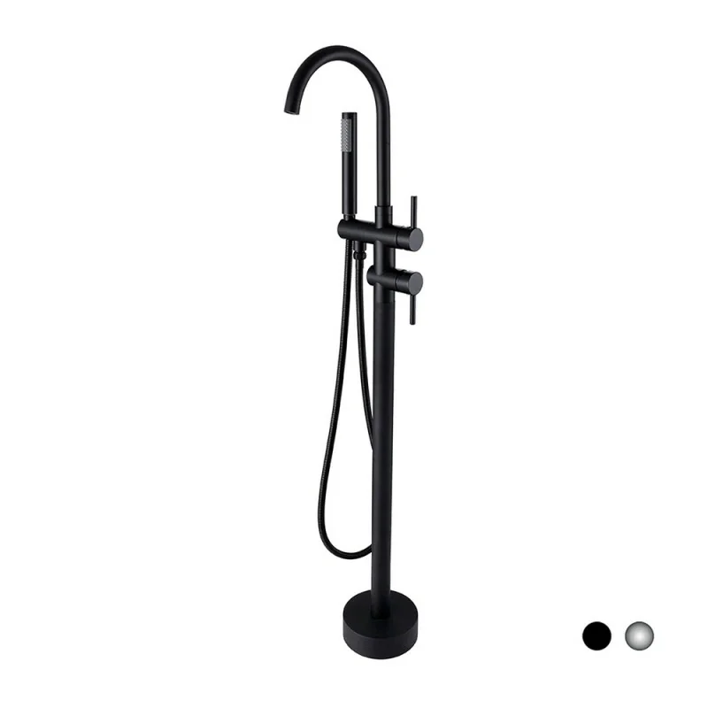 Rubinetto vasca a pavimento - in ottone nero opaco completo di kit doccia e base di fissaggio