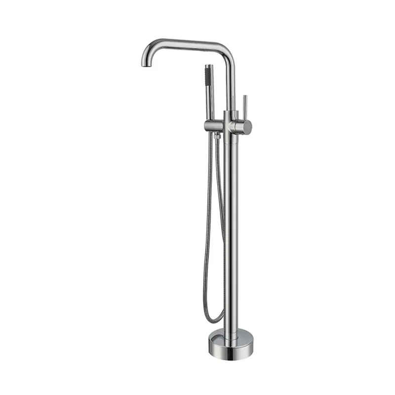 Rubinetto da terra - per vasca freestanding in ottone cromato completo di kit doccia e base di fissaggio