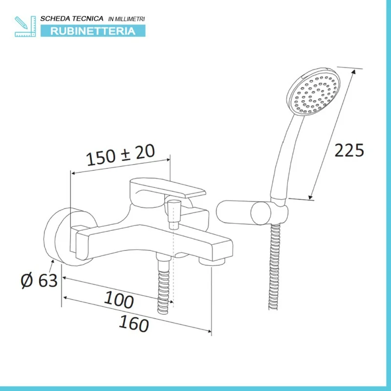 • Tipologia:rubinetto vasca con deviatore e kit doccetta;