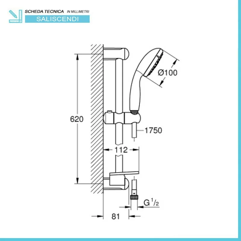 Saliscendi doccia grohe tempesta con doccia 3 getti e mensola portasapone Saliscendi doccia grohe