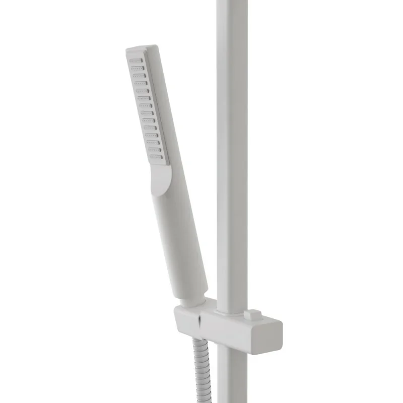 Saliscendi doccia quadrato 70 cm regolabile con doccetta slim in ABS bianco opaco Hidra