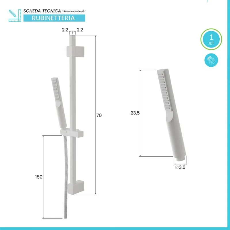 • Dimensioni doccetta monogetto: L 3,5 x H 23,5 cm;