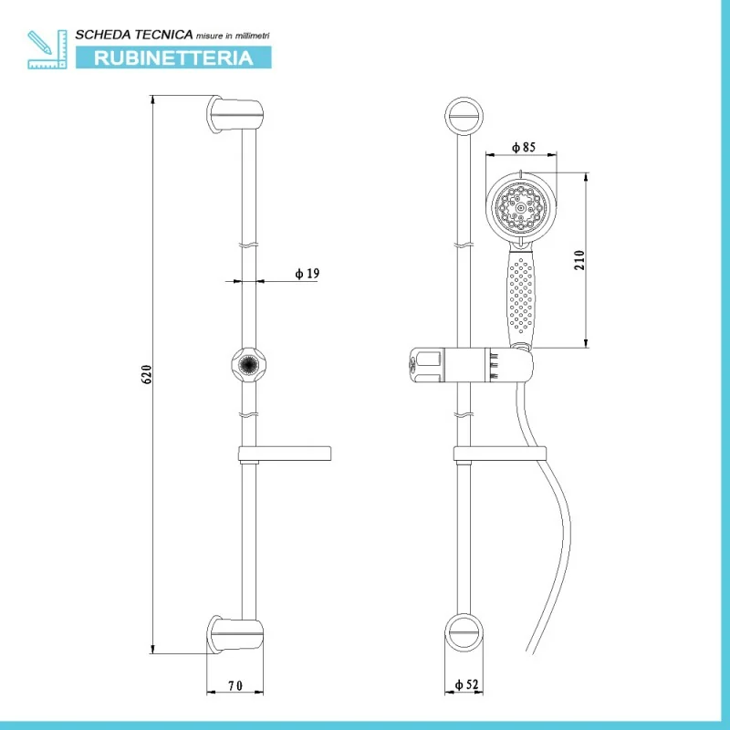 • Dimensioni doccetta:H 21 x ø 8.5 cm;