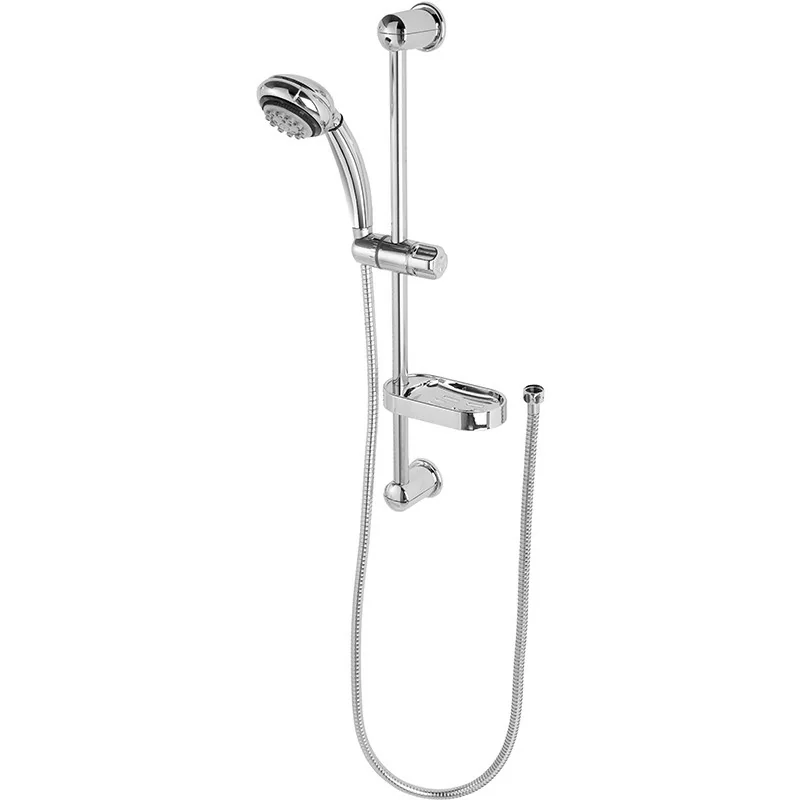 Saliscendi doccia - cromato con doccetta multifunzione a 8 getti e mensola portasapone in abs