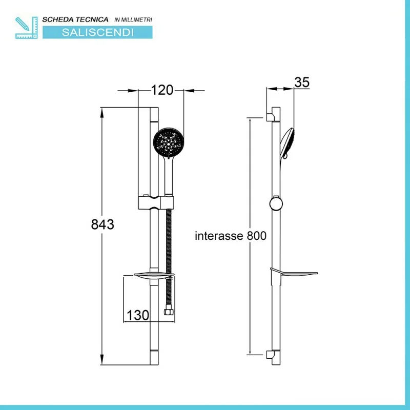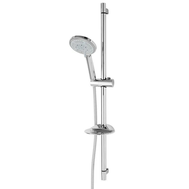 Questo saliscendi doccia si inserisce in una linea di arredo bagno economica ed esteticamente gradevole,ideale se cerchi una soluzione di comfort per la zona doccia anche negli appartamenti più ristretti. Il saliscendi si installa a parete,e ha 8 funzioni incluse. Il Saliscendi e' dotato di mensola portasapone e flessibile da 150 cm.