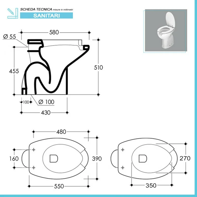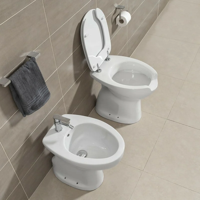 Vaso aperto per disabili e terza età,installazione standard con scarico a pavimento