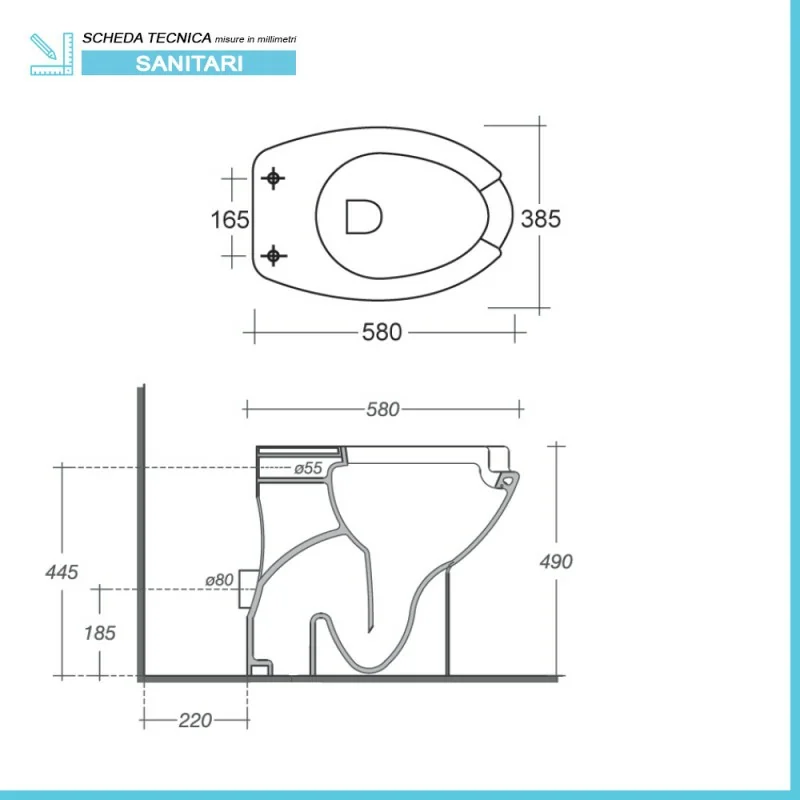 Vaso in ceramica per disabili e terza età,installazione standard con scarico a parete