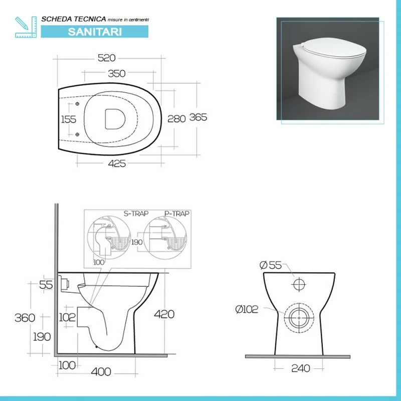 • Dimensioni wc:L 36,5 x p 52 x H 42 cm;