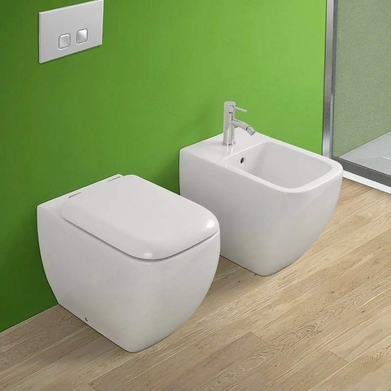 Coppia di Sanitari Metropolitan bianco lucido con copriwater avvolgente