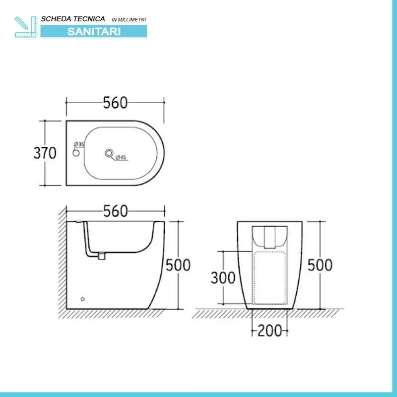 • Dimensioni bidet:L 37 x p 56 x H 50 cm;