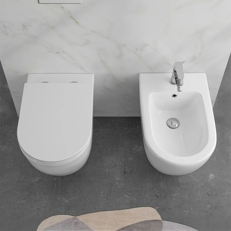 Wc e bidet filomuro per anziani con scarico traslato serie Comoda