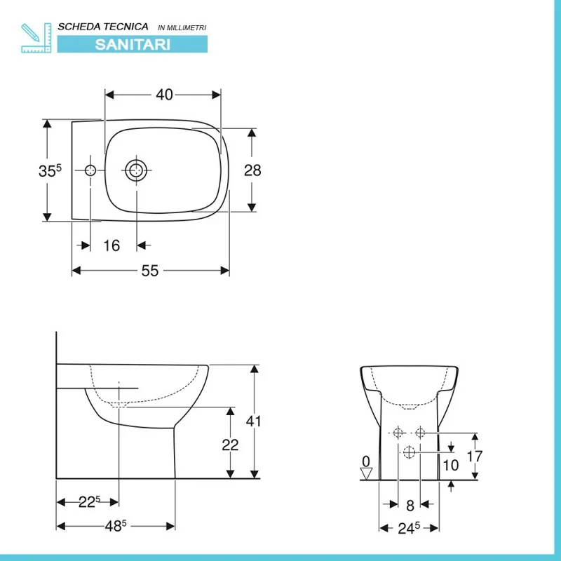 • Dimensioni bidet:L 35,5 x p 55 x H 41 cm;