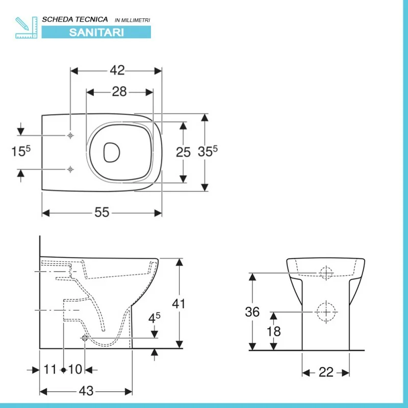 • Dimensioni wc:L 35,5 x p 55 x H 41 cm;