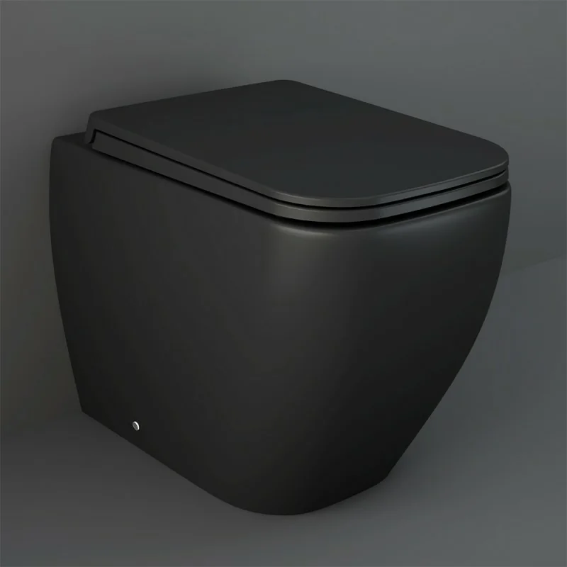 Sanitari filomuro nero opaco Rimless Rak serie Metropolitan copriwc soft-close