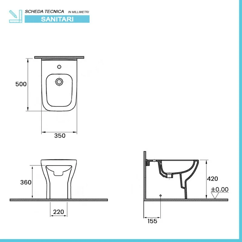 • Dimensioni bidet:L 35 x p 50 x H 42 cm;