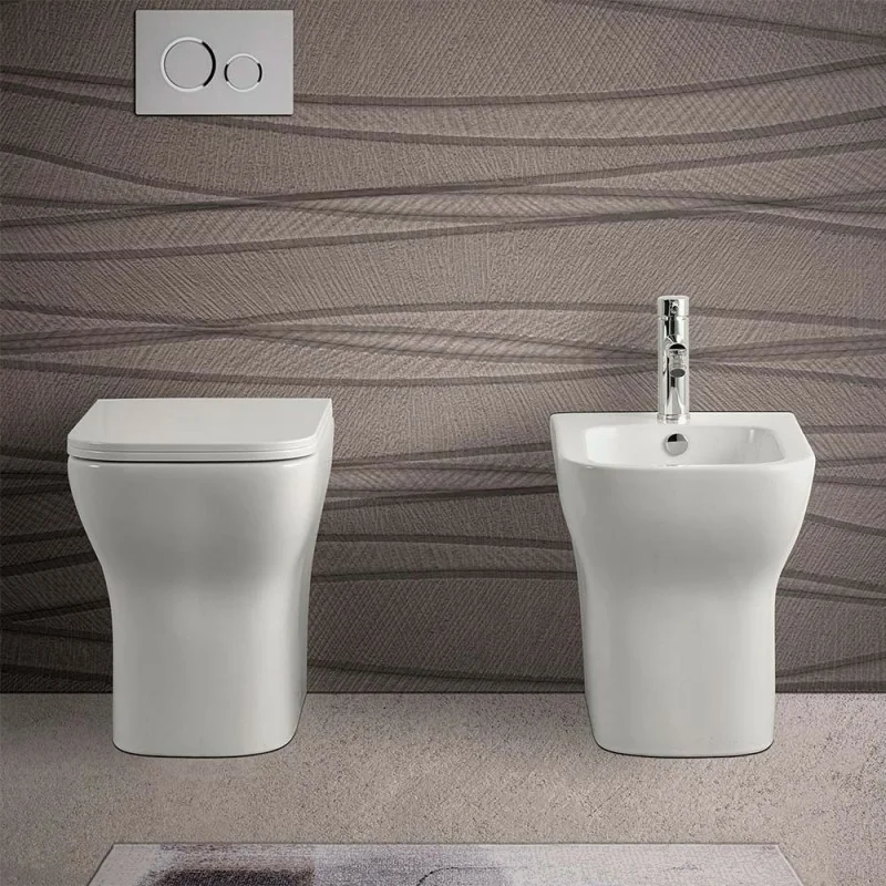 Sanitari filomuro con wc Rimless e scarico universale,bidet e copriwc originale soft-close