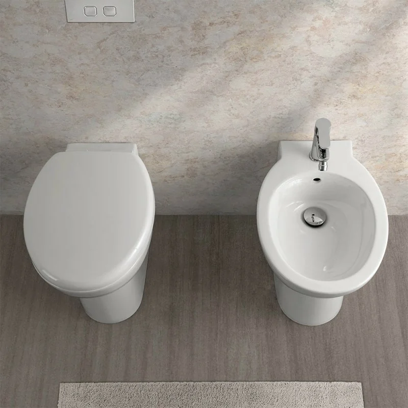 Il set include wc e bidet realizzato con l'impiego di ceramica di alta qualità e copriwater originale in termoindurente,modello avvolgente con chiusura soft-close. Il wc è con brida e scarico universale,adatto sia per gli impianti a parete che a pavimento mediante l'installazione della curva tecnica.