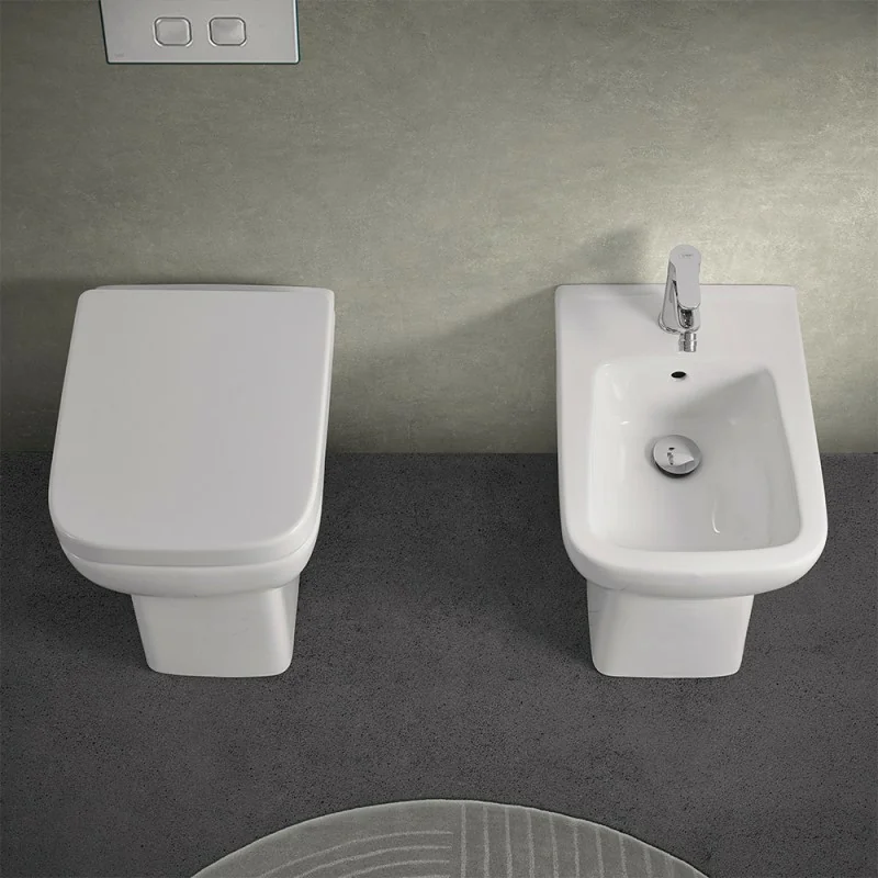Il set Ginevra in ceramica di alta qualità ha installazione filomuro e profondità ridotta,ideale per salvare spazio e semplificare le operazioni di pulizia. Il set include wc con scarico configurabile sia a parete che a pavimento mediante l’installazione della curva tecnica,bidet con foro per miscelatore e troppo pieno,sedile originale con chiusura soft-close e cerniere in acciaio.