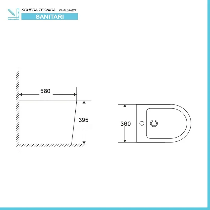 • Dimensioni bidet:L 36 x p 58 x H 39,5 cm;