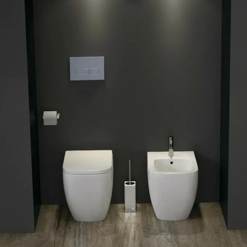 Coppia di sanitari filo parete con scarico multiplo e sedile originale con chiusura standard