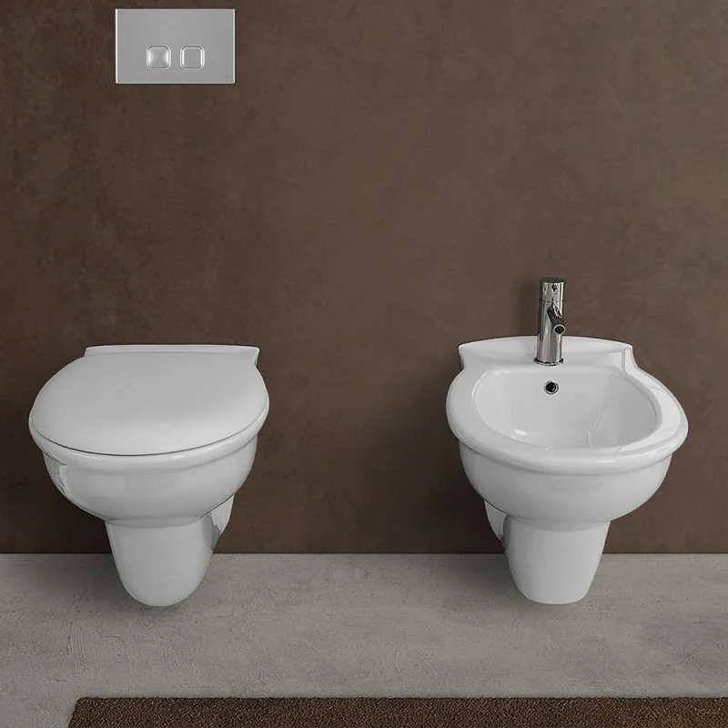 Set wc e bidet sospesi con brida classica e sedile avvolgente con chiusura standard